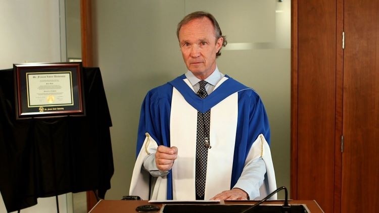 “I am honoured and humbled to accept this honorary degree from StFX, particularly because three of my four children attended StFX,” he said as he opened his remarks.