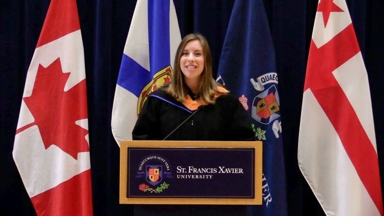Afternoon senior class speaker, Patti-Anne Tracey, a Schwartz School of Business student from Antigonish, NS, said she is amazed to see the culture the class has built at StFX.